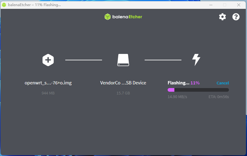 准备一张16G的U盘使用文末附件中的镜像烧录工具烧录openwrt镜像如下