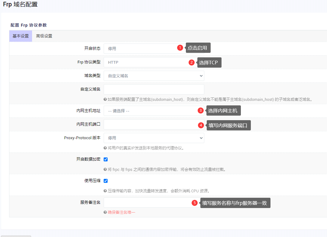 这里我们以浮居frp为例,进入其官网并注册账号登陆其控制台,左侧点击添加隧道配置需要内网穿透的服务信息配置说明如下所示