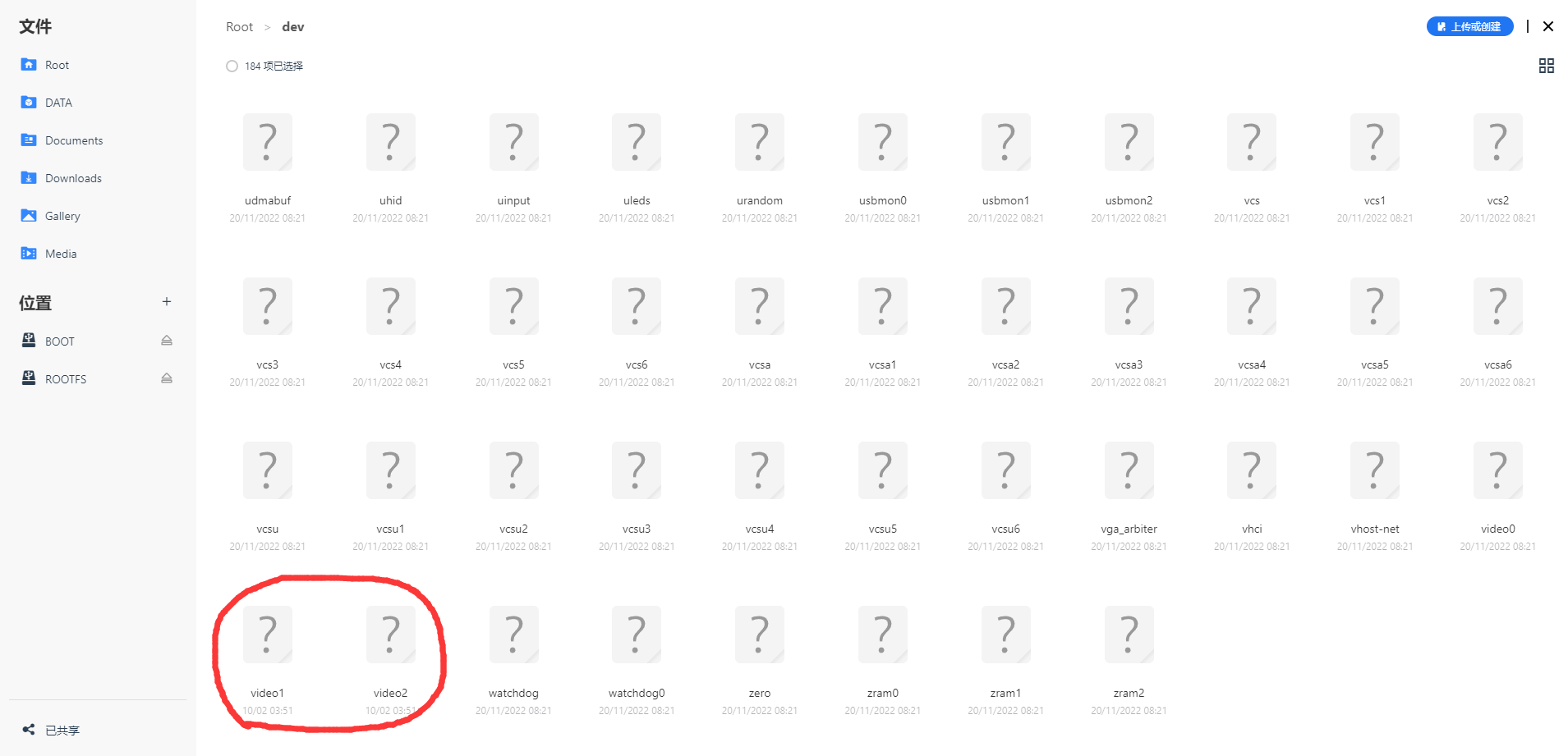 切换到Root根目录下选择dev文件夹,可看到ttyAML0与video0文件,看到此文件基本代表Armbian可以使用串口与USB摄像头(若你用的是其他设备使用Armbian,这两个文件不一定有可能有ttyAML0但不一定有video0,没有的就代表系统没有相关驱动,上个教程物联网不求人-服务器搭建So Easy中的系统就没有这两个驱动因此不能用于3D打印机的控制)