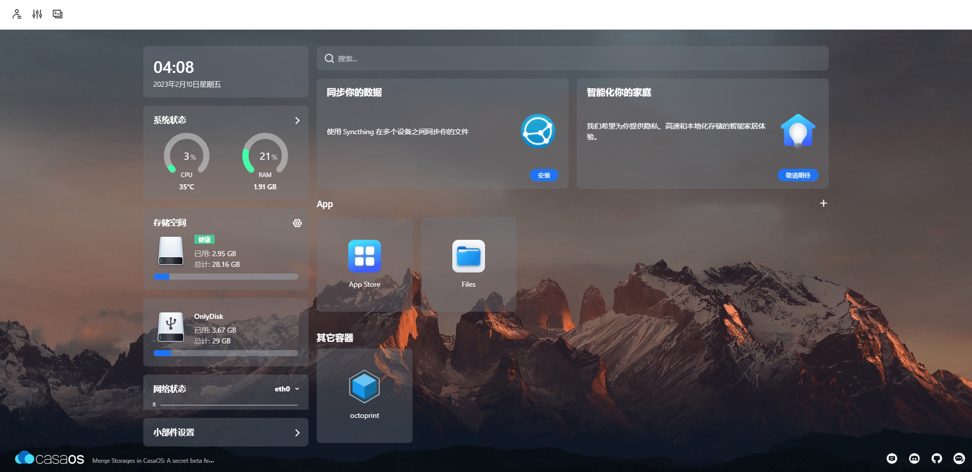 “CasaOS”是一个基于Docker生态系统的开源家庭云系统,专为家庭场景而设计。致力于打造全球最简单、最易用、最优雅的家居云系统。使用CasaOS我们可以很方便的管理与配置我们的Docker应用并管理Armbian的文件系统(可通过文件共享将Armbian的文件挂载到电脑方便管理),其有一个特点就是可以随时修改已有Docker容器的任意配置项,如端口映射,挂载点等。